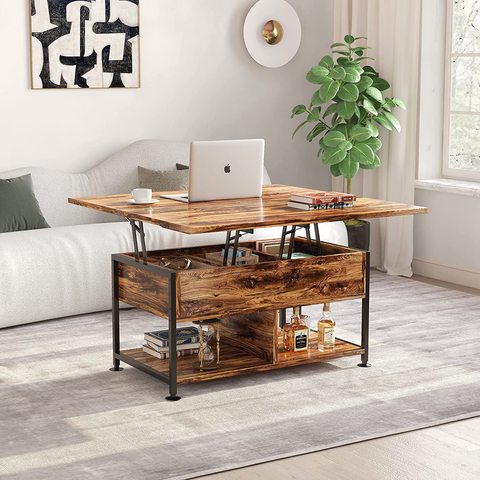 コーヒーテーブル農家スタイルリビングルーム家具素朴な木のモダンなリフトトップ中国サプライヤー